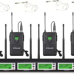 GTDaudio 4x800 Adjustable Channels UHF Diversity Wireless Cordless Microphone System with 4 Bodypacks, 4 Beige Headsets & 4 Lapels Mics, Range 450 ft,$250San Jacinto, CA