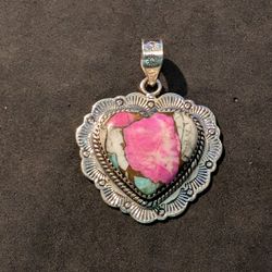 Sterling Silver and Cotton Candy Dahlia Heart Shaped Pendant $85Hesperia, CA