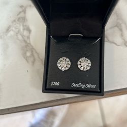 14 Kt Over 925 Silver Simulated Diamonds Mens Earring Screwback Studs$140Perris, CA