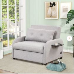 37 in. Gray Linen 2-Seater Twin Size Pull Out Sofa Bed with 2-Wing Table and USB Charge$450Victorville, CA