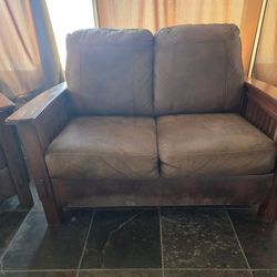Ashley Farm Style Couch Sofa Brown and Wooden Loveseat and Sofa$100Grand Terrace, CA