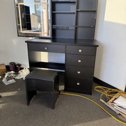 FUFU&GAGA 5-Drawers Black Wood LED Push-Pull Mirror Makeup Vanity Sets Dressing Table Sets with Stool and 3-Tier Storage Shelves$140Alta Loma, CA