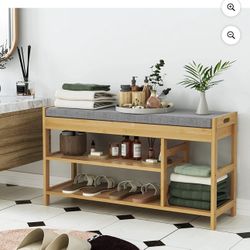 Shoes Bench with Cushioned Seat, Entryway Shoes Rack Bed End Stool with Storage Shelves, Natural (up to 7 Shoes)$50Rancho Cucamonga, CA