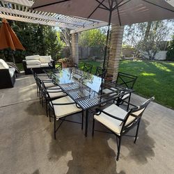 Brown Jordan Dining set with 10 chairs and white sunbrella cushions.$3,600Upland, CA