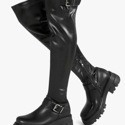 L Comfortable Thigh High Boots:These knee high black platform boots are set on a thick 2.16 inch heel. Comfortable lug sole paired with a 1.18 inch$45Victorville, CA