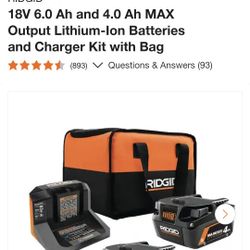 Ridgid 4.0ah battery Kit$175Menifee, CA
