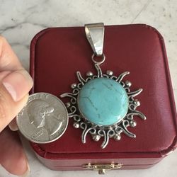 925 Sterling Silver , Turquoise Sun 🌞 Pendant , Marked Mexico 🇲🇽, 925 In 2 Places In Photos , Large Bale , Nice Sized Sun$38Victorville, CA