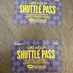 (2 )Coachella Weekend 1 Shuttle Passes$250San Diego, CA