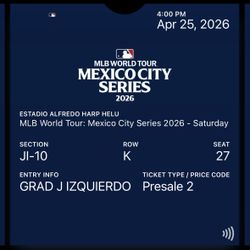 1 ticket to Mexico City Padres vs Dbacks$100Chula Vista, CA