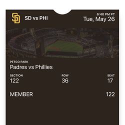 Padres Vs Phillies - Tuesday 5/26$70Chula Vista, CA