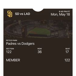 Padres Vs Dodgers - Monday 5/18$150Chula Vista, CA