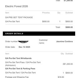 GA Pre-Set Tent Electric Forest$2,000San Diego, CA