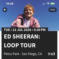 Ed Sheeran Petco Park July 21.2026 Two Tickets $259.00ea $259San Diego, CA