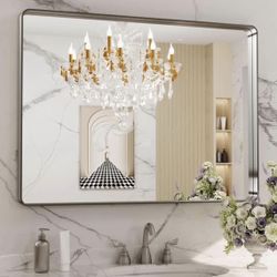 LOAAO 40X30 Inch Brushed Nickel Bathroom Mirror, Rounded Rectangle Silver Metal Frame Mirror, Brushed Nickel, Anti-Rust, Shatter Proof, Hangs Horizont$100San Diego, CA