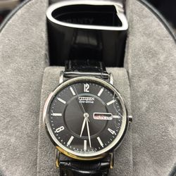 Citizen Eco-Drive Analog E101-S015570 Black Dial Leather Strap Men's Watch CT76$79San Diego, CA