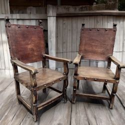 Vintage Chairs Large Spanish Colonial Set Of 2 real Leather Solid Wood $550Poway, CA