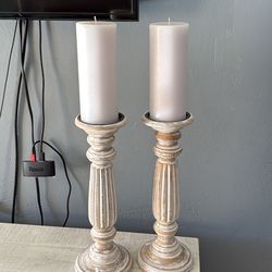 Farmhouse style candle holders and white candles$25San Diego, CA