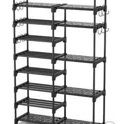 ROJASOP Shoe Rack Organizer, 8-Tier Metal Shoe Rack for Closet Entryway Garage, 26-32 Pairs Tall Shoe Boot Storage Shelf with 15 Hooks, Stackable Larg$20Escondido, CA