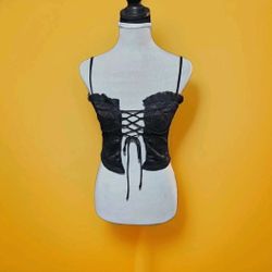 PRINCESS POLLY Lace-Up Front Spaghetti Strap Corset Top Black Lace Size 2 NWT$25Spring Valley, CA