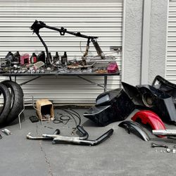 Custom Harley Davidson Motorcycle Collection Frame Fenders Tires Parts Pieces Exhaust Side Saddle Bags $1,000San Diego, CA