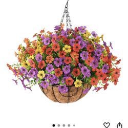 2 New Artificial Faux Hanging Plants Flowers Basket for Spring Summer Outdoor Decoration, Fake Silk Daisy in Planter Realistic UV Resistant Look Real $30Bonita, CA