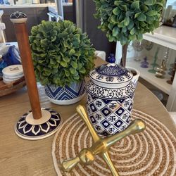 Blue And White Chinoiserie Coastal Faux Topiary Plants Home Decor Paper Towel Holder $70San Marcos, CA