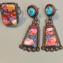 Navajo Sterling Silver Ring & Earrings Set β Colorful Inlay$100Chula Vista, CA