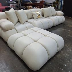 (Sold) Chateau d’Ax Ivory White Leather Sectional — 4pc Modular Over $2.2k New$1,200Encinitas, CA