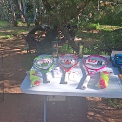 3 Wilson Tennis Rackets Starter Balls And Wilson Extra Duty Tennis Balls And Wristbands$1Lakeside, CA