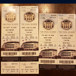 NY Yankees final old stadium game tickets.$35Grand Terrace, CA