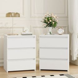 White Nightstand with 3 Drawers Set of 2, Sofa Table for Living Room, Modern Wooden Storage Cabinet for Bedroom$120Upland, CA
