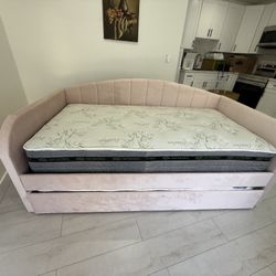 Queen Upholstered Smart LED Bed Frame with Storage Drawers & Adjustable Chic Double Petal Headboard, Velvet Princess Platform Bed with Soli$165Ontario, CA