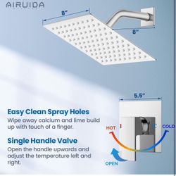 Shower Faucet Set Bathroom Rain Shower System 8 Inch Square C23 Chrome Or Black Or Nickel $40Santa Fe Springs, CA