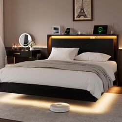 Queen Size with LED Lights & Charging Station – Kids Wood Floating Queen Bed Frame with Storage Headboard, Adhesive Slats, Kick-Free & Noise-Free Desi$110Ontario, CA
