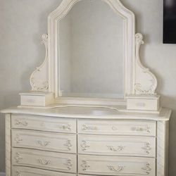 Vintage white/Cream Bedroom Set - Bed, Dresser, Nightstands$600Bell Gardens, CA
