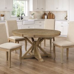 5-Piece Dining Table and Chair Set, Oak Natural Wood Round Extendable Dining Table and 4 Upholstered Dining Chairs [NEW] **Assembly Req** $360Pico Rivera, CA
