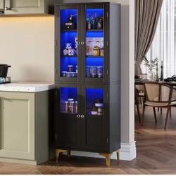 Tall Black Engineered Wood 24 in. Kitchen Pantry Cabinet with Adjustable Shelves, Glass Doors and Led Lights$80Anaheim, CA