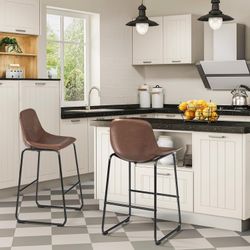 Pu Leather Bar Stools Rustic Barstools with Back and Footrest, Kitchen Bar Height Stool Chairs Set of 2, Brown$65Fontana, CA