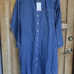 Quince Distressed Denim Maxi Shirt Dress M Relaxed Oversized Fit Indigo Read!NWT$59City Of Industry, CA