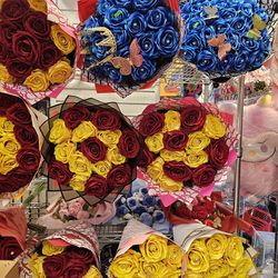 Colorful bouquets available! These have different types like red roses, pink lilies, bright sunflowers, and some cool crochet flowers. Also got a supe$30San Bernardino, CA