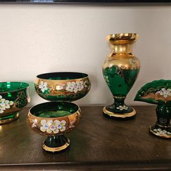 Egermann Bohemian Czech Green Glass Gold Enameled set$350Bellflower, CA
