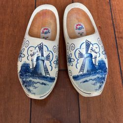 Hand Carved Collectible Made In Holland Clog Shoe Blue Windmill Beautiful Size 6$25Brea, CA