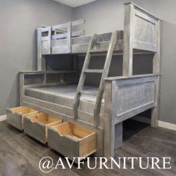 Twin Over Twin Double Solid Pine Wood Bunk Bed Complete Set With Trundle Drawers $1,000Rancho Cucamonga, CA