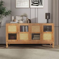 Retro 4-Door Sideboard with Large Storage Space, Accent Cabinet with Rattan and Glass Doors for Entryway Dining Room Kitchen Living Room$100Santa Ana, CA
