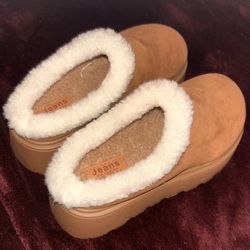 Cozy Platform Slippers – Tan with White Fleece Lining$21Grand Terrace, CA