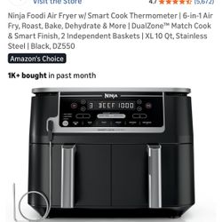 Ninja Foodi Air Fryer w/ Smart Cook Thermometer | 6-in-1 Air Fry, Roast, Bake, Dehydrate & More | DualZone™ Match Cook & Smart Finish, 2 Independent B$100Bell Gardens, CA