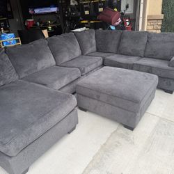 NEW! Dark Grey Sectional Sofa And Ottoman Set Gray Fabric Ashley Style Couch Living room Discount Furniture Warehouse BIG SALE Green Black Beige color$499Chino, CA