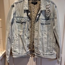 PacSun Light Blue Distressed Denim Jacket with cheetah print inside size L$20Pasadena, CA