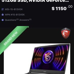MSI KATANA GAMING LAPTOP THIN GF66 RTX3060 1TB SSD 1080p 144Hz Display$799Orange, CA