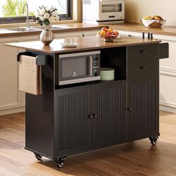 Black 60''Kitchen Island with Large Capacity Storage,Rolling Kitchen Island Table on Wheels, Island Table for Kitchen with Adjustable Shelves$100Corona, CA